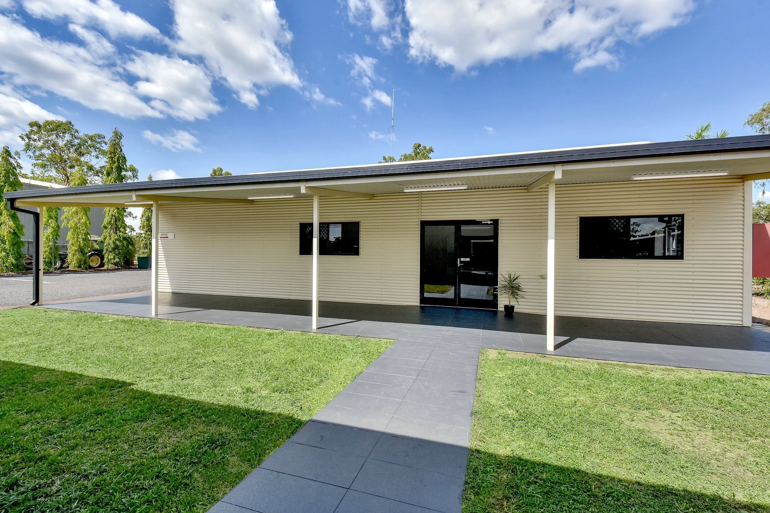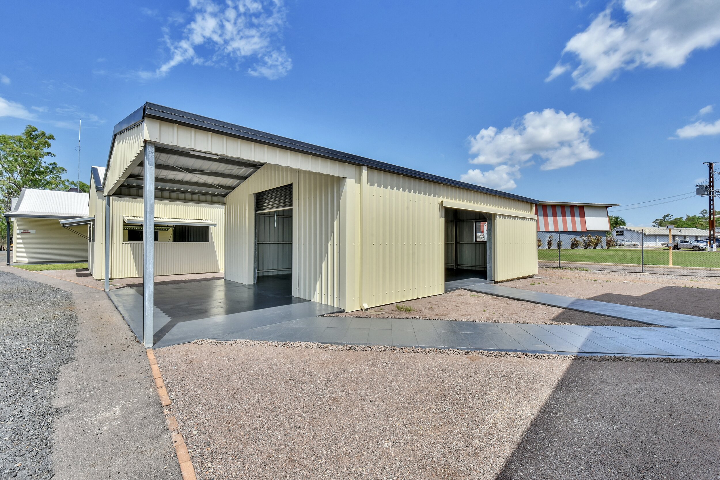 The OFFICE building is 15m (L) x 9m (W) x 5.5m (H) with an attached tiled 3.0m wide verandah at the front. The total size is 188 sqm. The office building includes a large reception area with a cathedral ceiling, three large offices, kitchenette/ lunchroom, a file storage room and a spacious bathroom with a shower (and full disabled access). The office building has brand new air-conditioners throughout. The roof of the office has been painted with AcraTex Cool Roof. The property is NBN ready.